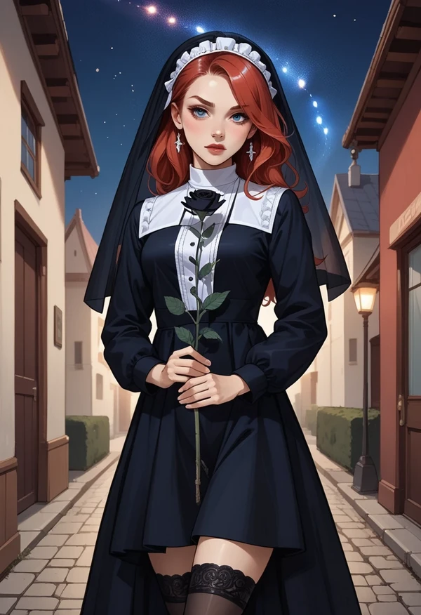 Optional: holding, black rose, flower, black flower, high heels, cross (but this tends to put a ton of crosses)