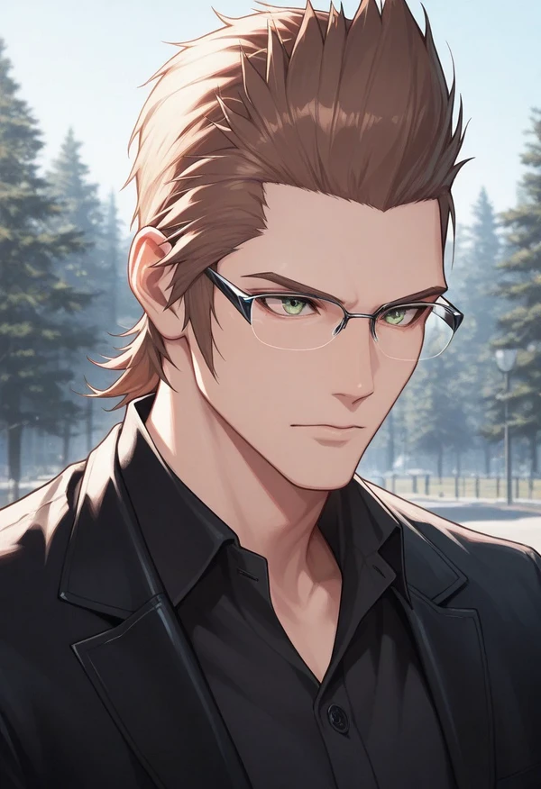 PROMPT ignisxv, 1boy, male focus, solo, green eyes, glasses, brown hair, shirt, black shirt, collared shirt, jacket, black jacket, pants, black pants Made by - Redyaan https://civitai.com/models/600335/ignis-scientia-final-fantasy-xv-pony-illustrious