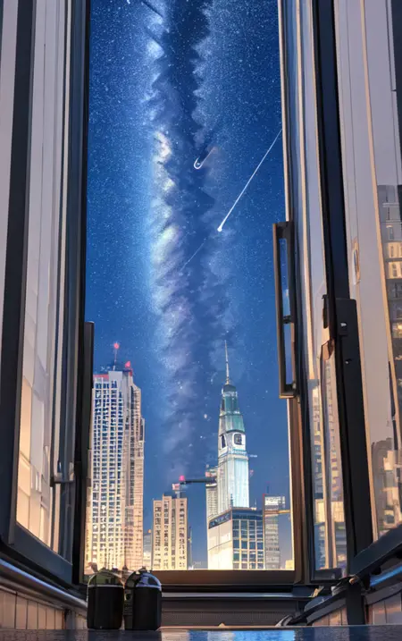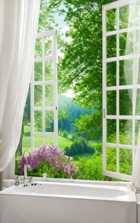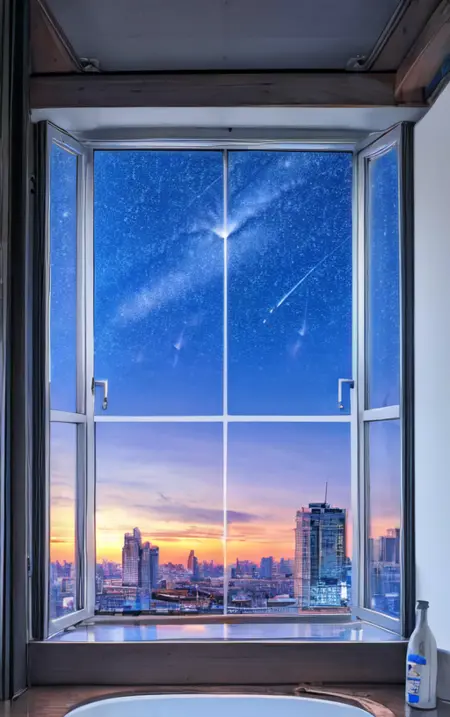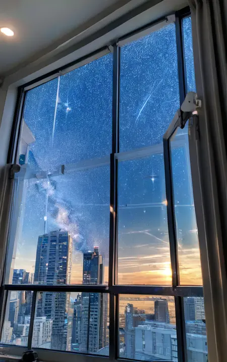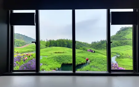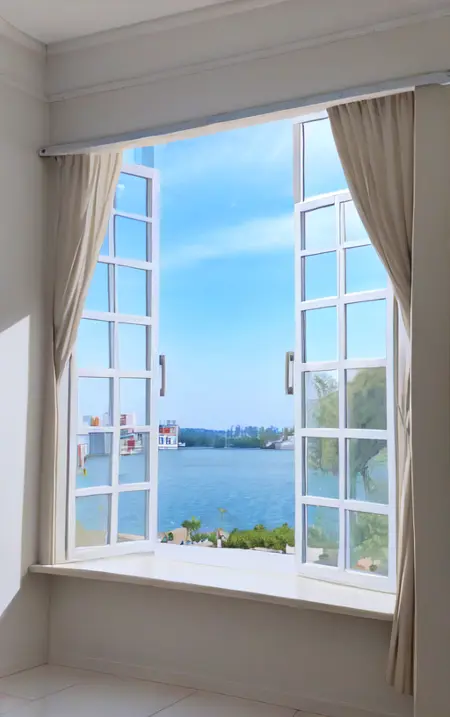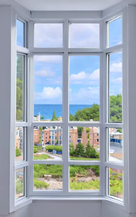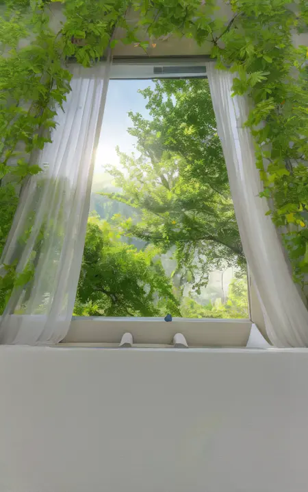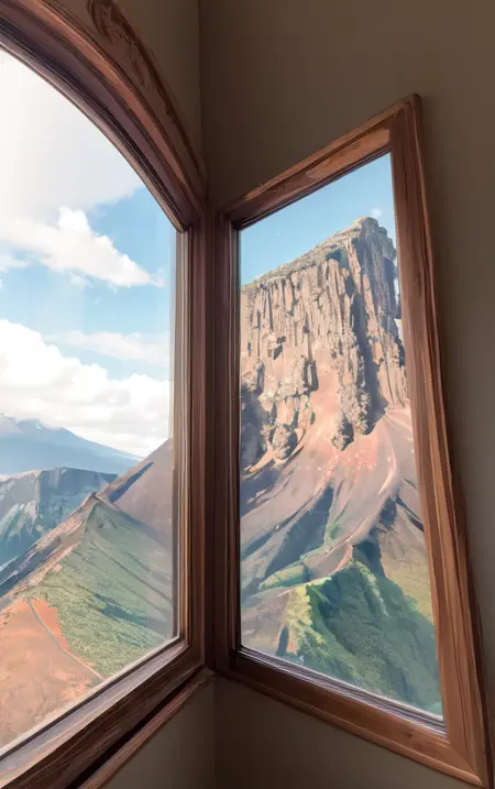 Using the prompt "window", generate a random scenery outside the window. This can be used as wallpaper and will help you start your day with a positive mood.