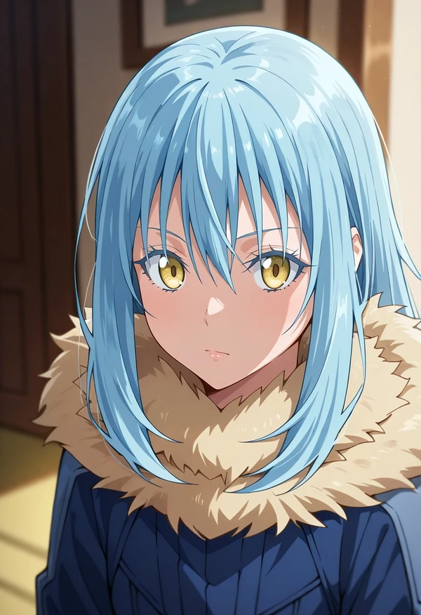 rimuru_tempest, blue hair, yellow eyes, long hair, bangs, hair between eyes, androgynous